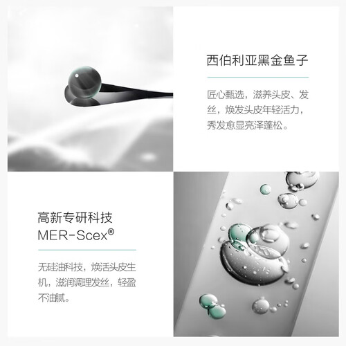 其配方中含有西伯利亚黑金鱼子,有效滋养头皮和发丝,打造亮泽蓬松的秀发;并且还采用了专研科技,轻盈不油腻。
