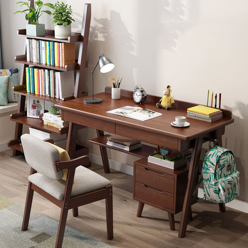 侧板挂钩设计,方便挂放物品,拿取便捷,整洁有序。升级实木置物板,结实牢固,可以稳固放置书籍。
