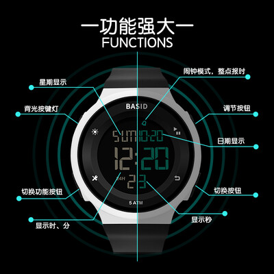 可拆卸的表带设计,方便日常佩戴与清洗。数字显示的表盘,读时方便且清晰实用。