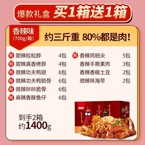 80%的肉类占比,大口吃肉,幸福感十足,满足你的味蕾。飘香卤味,精选生态养殖鸭,加上8小时的老卤慢熬,鲜香四溢。