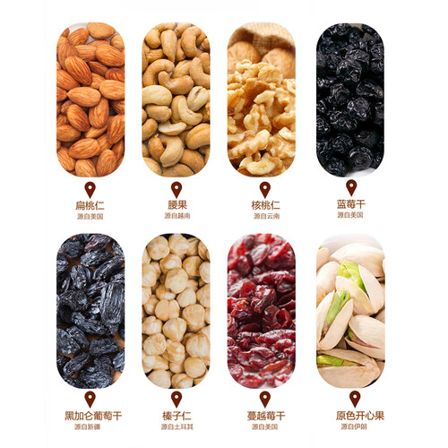 添加八味食材搭配,坚果仁和果干都饱满,口感层次更丰富。独立控量分袋装,干湿分离,持久新鲜。