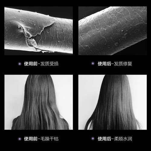 采用黑金鱼子的成分制作而成,且质地温和,营养易吸收,抚平毛糙。有效修复损伤,令秀发丰盈柔韧。