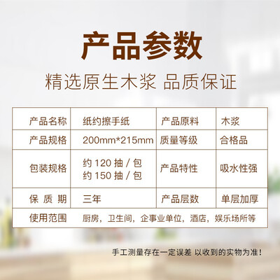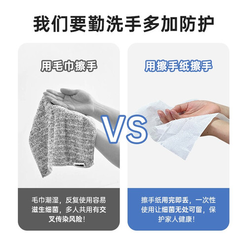 精选原生木浆制作,萃取纤维制成,纸张柔白,绿色环保。采用加厚的设计,亲肤舒适,吸水能力强,一张即可擦干,清爽舒适。