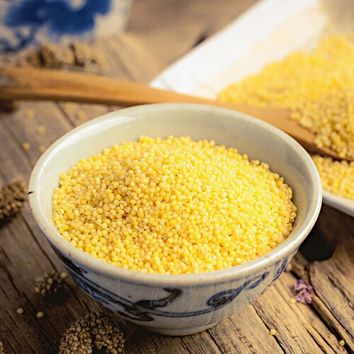 小米颗粒大小均匀色泽自然有光泽,颗粒更加完整,碎米率低。可以闻到清新谷香,没有其他异味,手感爽滑舒适。