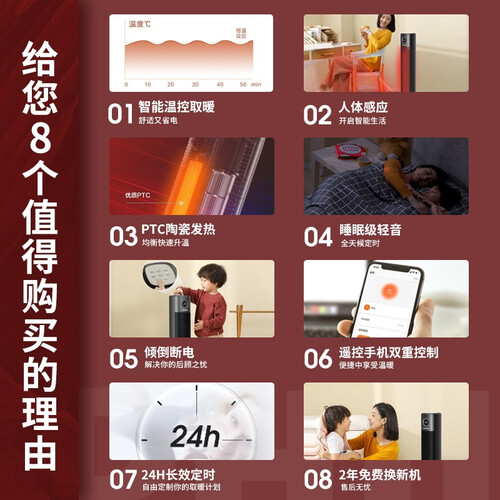 可通过手机APP远程操控,下班前设定温度,下班到家就能被温暖包裹。远红外人体感应技术,感应到来人自动开启,使用更便捷。