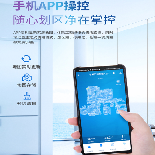 采用风道优化和声学降噪设计,快速散热同时静音低噪运行,不打扰您和家人的休息;APP手机操控,想清扫哪里就清扫哪里。