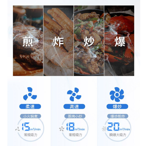 一键爆炒功能,配合强劲大风压,顺畅排出厨房浓烟无惧倒灌。多重降噪技术,实现低分贝运行,安静不吵扰。