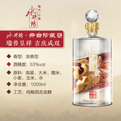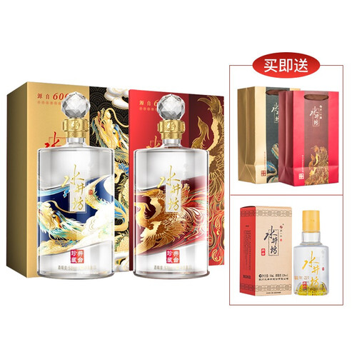 沿用百年古窖池,甄选优质五谷精心酿制而成,口感饱满丰富,香气馥郁。如宝石般晶莹通透瓶身以龙凤点缀,寓意美好,收藏更佳。