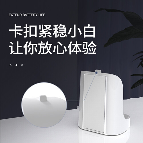 采用无线底座,可以便携充电,满电状态下可以连续使用240小时,长久续航。可以粘在墙壁上,粘力十足不掉落。