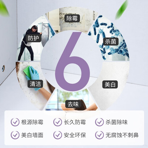 强效的分解技术能渗透去除墙面霉菌污渍,从源头瓦解霉菌,使用后能形成一层保护膜,防止霉菌在滋生。