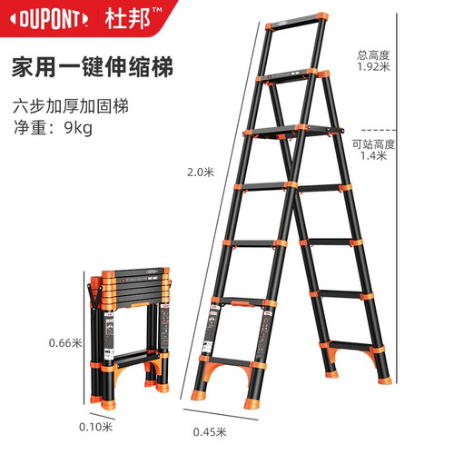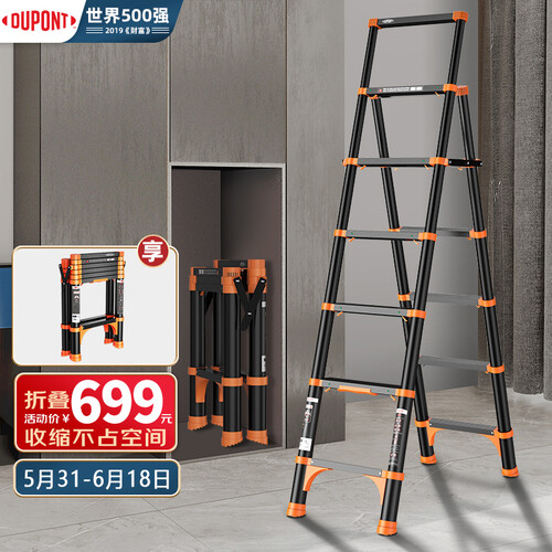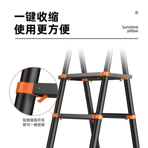 可伸缩可折叠的人字梯,随时变换形态,方便携带、存储。而且拥有300斤承重力,抗压不变形,使用寿命更长久。