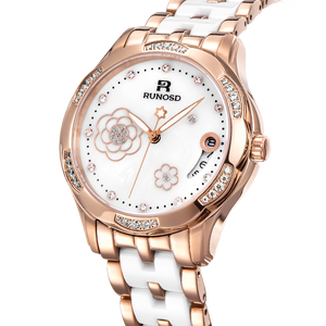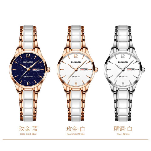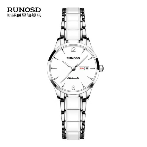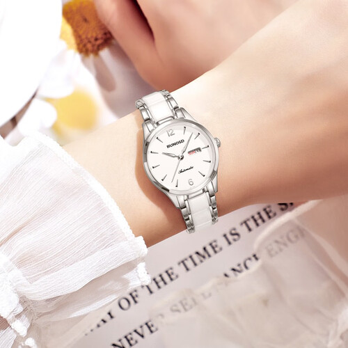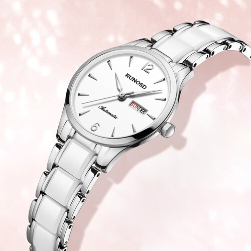 纯白陶瓷间精钢表带,呈现出更为立体的视觉效果,满足时髦精们对与众不同的追求。星期、日历双显,提升掌控力释放更多自信。
