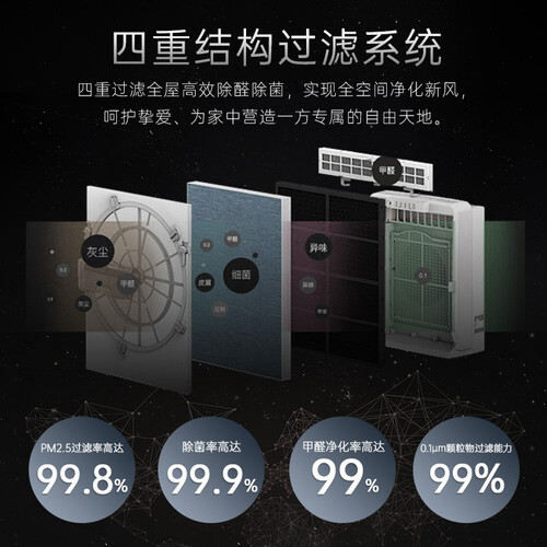 支持智能监控,持久拥有出众净化效果,防止不良物质侵害健康。搭载四重过滤系统,层层拦截,享洁净清新呼吸。