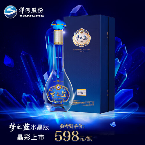 精选梦之蓝水晶版,具有清澈透明的酒体,口感细腻醇厚,令人回味无穷。精美的瓶身,呈现出梦幻色彩,光泽神秘深邃。