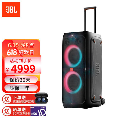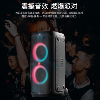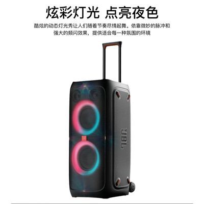 带有流畅的滚轮和伸缩合金拉杆设计,让你可以随时移动,方便外出使用。240W的震撼声压加持,流露出JBL的标志性音效。