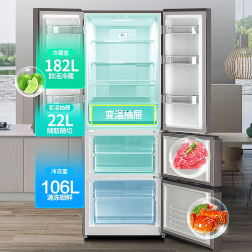 多维风冷,冷气均匀分布至各个角落,食材保鲜更持久。低分贝运行,不易扰人,营造安静舒适的居家环境,家用省心。