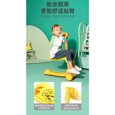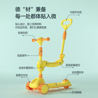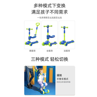 多样玩法的滑板车,可坐骑也可站着玩耍,稳固的三轮设计,滑行不易侧翻。