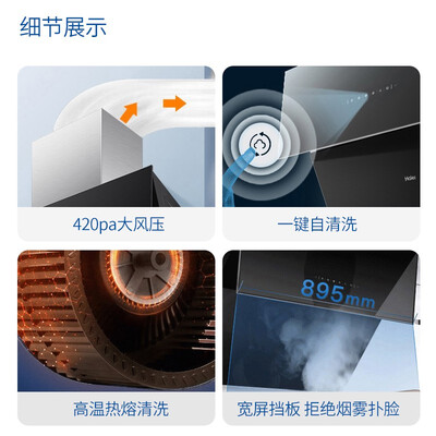 强劲风压设计,即使是烹饪高峰时依旧畅排无阻不倒灌,防干烧保护功能,时刻防患未然,确保使用安全。