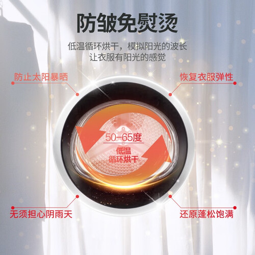 内置智能芯片,能够自动感知衣物重量、温度和湿度,轻松做到恰到好处的烘干。祛味空气洗,只需10分钟即可祛除衣物上的异味。