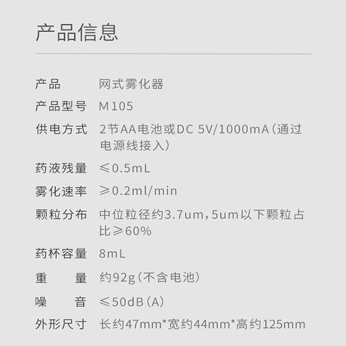 采用手持式的设计,使用不受场景的束缚,带来更为灵活的使用性能。2种雾化速率加持,满足儿童和成人的使用需求。