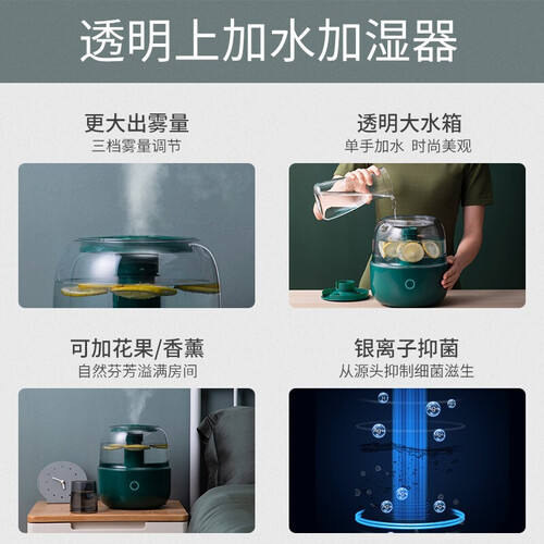 360度旋转出雾口,滋润空气可直达角落,加湿不留死角。内置香薰盒,加入喜欢的精油,释放宜人的香气。