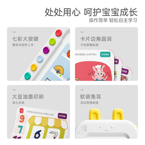 带有游戏情景式学习模式,充分锻炼宝宝眼耳手脑口五位一体。支持智能语音引导,训练宝宝独立思考能力,培养孩子自主学习好习惯。