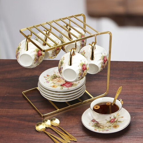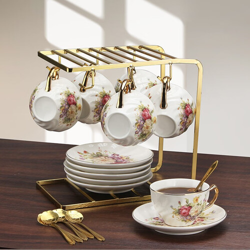 精选陶瓷结合浪漫花纹,优雅又大方。独具一格的金色描边,提升一抹轻奢美感,品味咖啡更添气质。