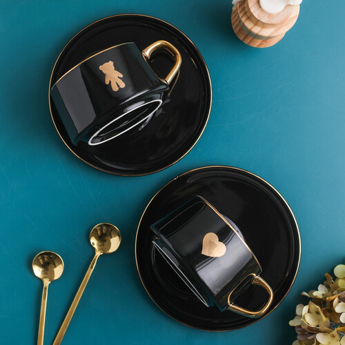 用金色点缀陶瓷艺术,以时下潮流主体元素设计的别致杯型,呈现出了别样视觉感受。人工描绘的形象跃然于上,简约中透出不凡品质。