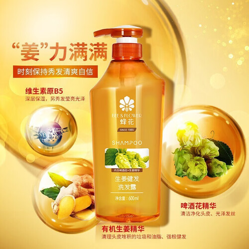 一款不含硅油、不含染色剂、不含酒精的洗发水,使用更安心;同时生姜、啤酒花等成分的加持,能强健发根、柔亮发丝。