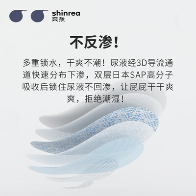 悬浮透气芯体,上下两层瞬间锁尿,拒绝尿液反渗,不易断层更自在;360度记忆弹性环腰,贴合肌肤无紧勒感。