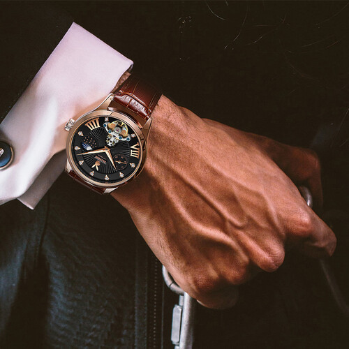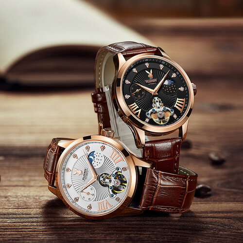 采用镂空飞轮设计,可以看见齿轮运转,更好的感受机械运动的魅力。采用夜光指针设计,无惧黑夜,带来更好的读时体验。