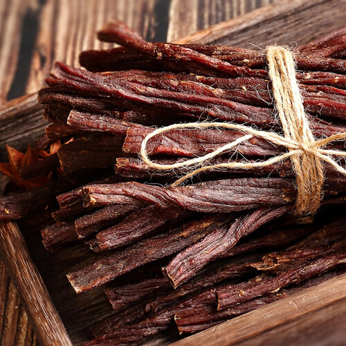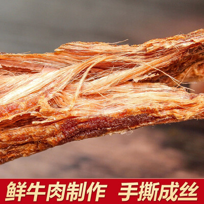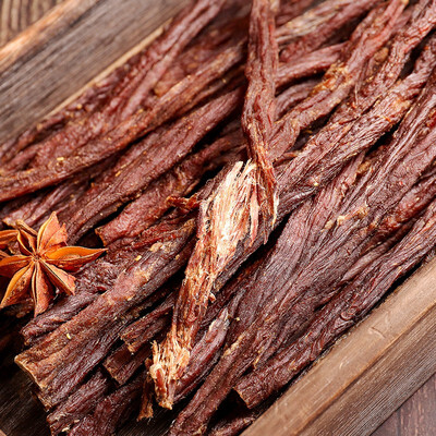 采用草原散养黄牛,取用黄牛的后腿肉,肉质鲜嫩,保证牛肉干的口感。肉香浓郁嚼劲十足,每一口都能满足味蕾。