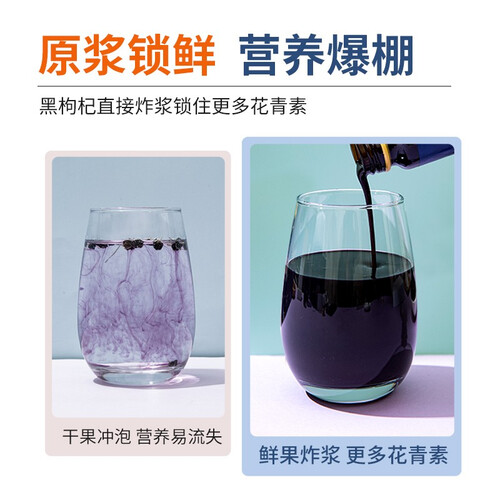 甄选新鲜枸杞在6小时内通过破壁榨汁,得到一瓶约等于480颗枸杞的鲜果原浆。富含花青素,每天一瓶,让你充满活力。小巧瓶装,随时享用。