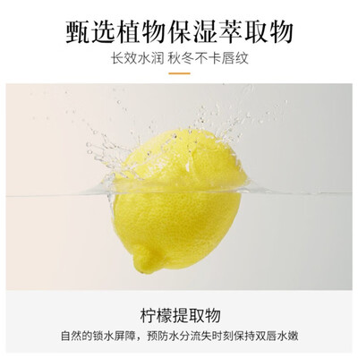 多种配方滋润唇部,高保湿,水润弹嫩更锁水,柠檬提取物自然的锁水屏障,长效锁水。妆效偏自然,唇后随自身温度变化,因人而异。