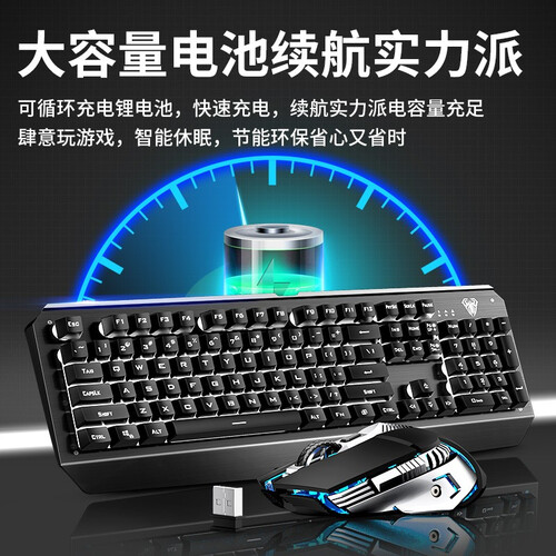 无线2.4G连接,有效避免无线装置之间相互干扰,去障碍传输距离可达约10米,更稳定。主机待机时,键盘自动休眠,智能节电。