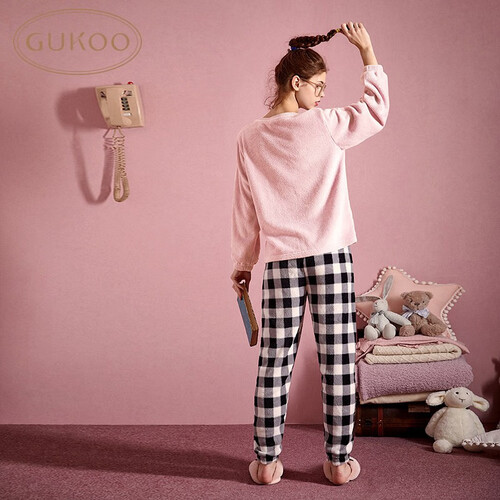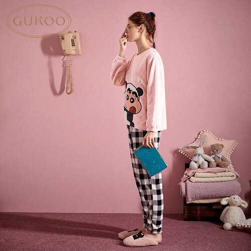 这款睡衣采用了可爱的卡通印花设计,看起来可爱有型,温馨有质感。裤腿的格纹款式,利落有型。