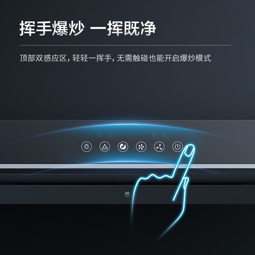 挥手即可开启爆炒模式,让您无需停止烹饪过程,避免菜肴焦糊。搭载大直径叶轮,提供强劲的吸力,应对油烟游刃有余。