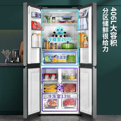 一级节能双变频,不仅可以降低噪音还更加节能环保。直角的开门设计,可以将冰箱随意摆放在墙角,节省空间方便使用。