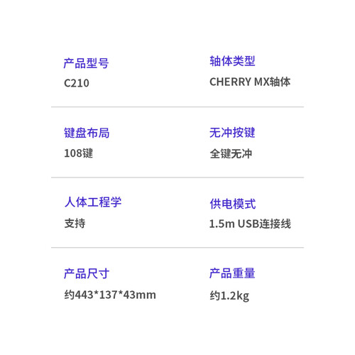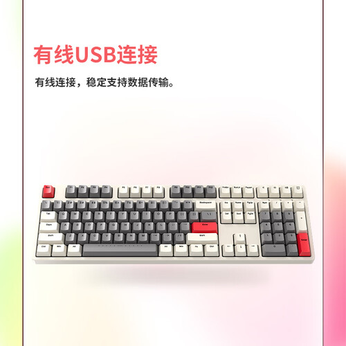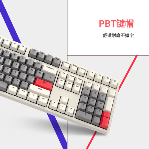 108键设计,小数字键盘与方向键全配备,满足不同场合下的操作需要。采用PBT键帽设计,不易磨损掉字。