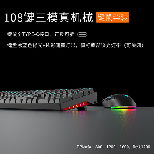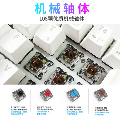 采用108键机械轴体,全键无冲,带来畅快的游戏体验。还支持多种自定义背光,营造愉悦氛围,使用更舒适。