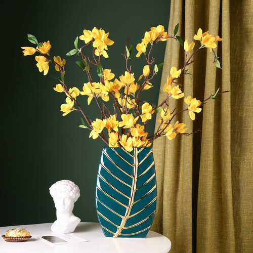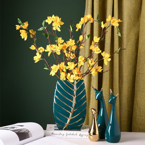 精致树叶花纹,描金搭配孔雀蓝瓶身,美丽优雅,令人爱不释手。可放置在客厅、卧室、书房等,随心搭配,极具风格。