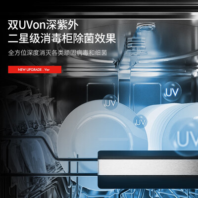 具备全不锈钢内胆,令烘干碗碟的速度更快,寿命也更久。搭载UV双紫外线净菌功能,净菌效果加倍,每天使用健康餐盘。