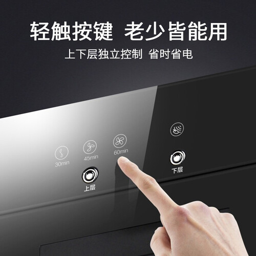 1+1双效消毒,分层独立控制,上层紫外线+中温,长效去除细菌。采用125℃远红外高温,快速击杀,强悍驱逐顽固病菌。