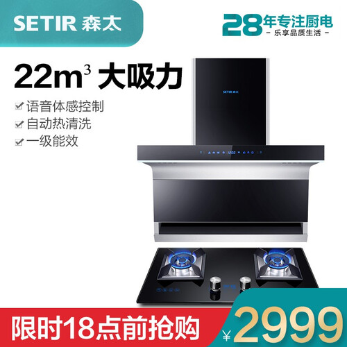 油烟机顶侧双吸,有效拢烟,比较适合喜欢爆炒的家庭。燃气灶带有热电偶熄火保护技术,熄火自动关气,避免意外发生。