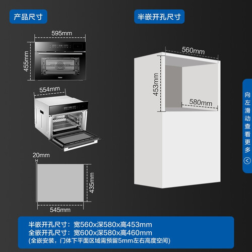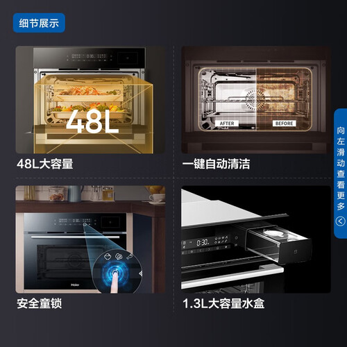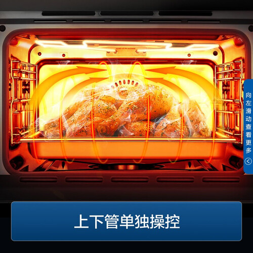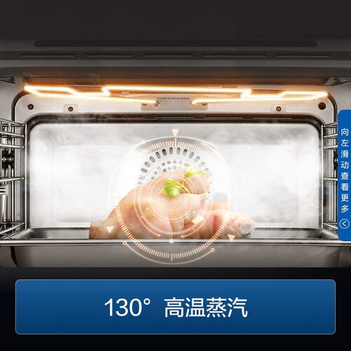 内置海量食谱,让你畅享美食盛宴。搭配蒸烤合一设计,自由切换让热量深入食材内部,释放烘烤空间。