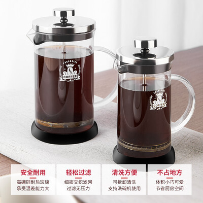 选用PP材质壶盖,健康安全,不含涂层,放心使用。加厚玻璃杯设计,结实可靠,经久耐用,不易爆裂。