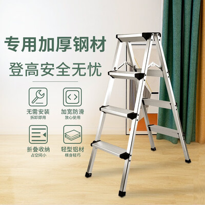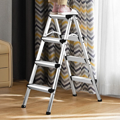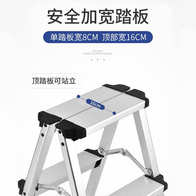采用封闭式三角踏板设计,受力点位置合理,多次踩踏不会走样。展开自动锁紧功能,防止梯子摇晃,登高犹如在平地。