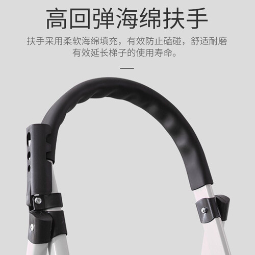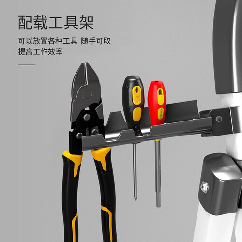 可折叠设计,折叠后纤薄不占空间,方便日常收纳。加宽踏板,攀爬更加安稳,降低踩空风险,守护您的安全。增加工具架,随拿随用。