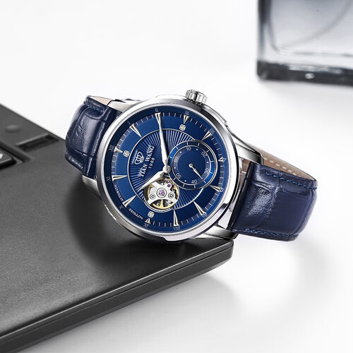 亲肤皮革表带,透气不闷热,佩戴体验佳,装点男士的复古情怀。立体条钉刻度,随时掌握分秒时间。