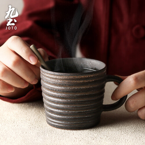 采用粗陶本身的肌理作为表现手法,略微加工,造型丰富饱满,古朴素雅。贴心的把手握感舒适,端拿方便。